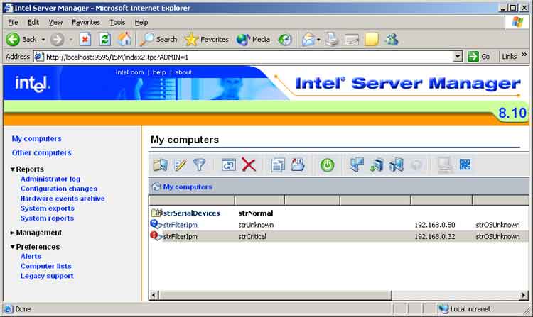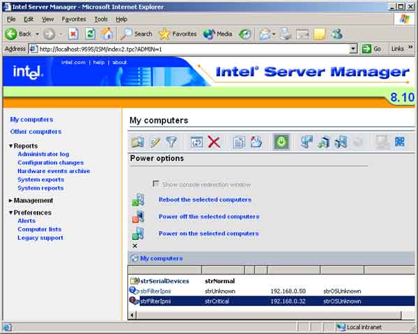 Intel Server Manager 8.1 connecting to iNET1640 |